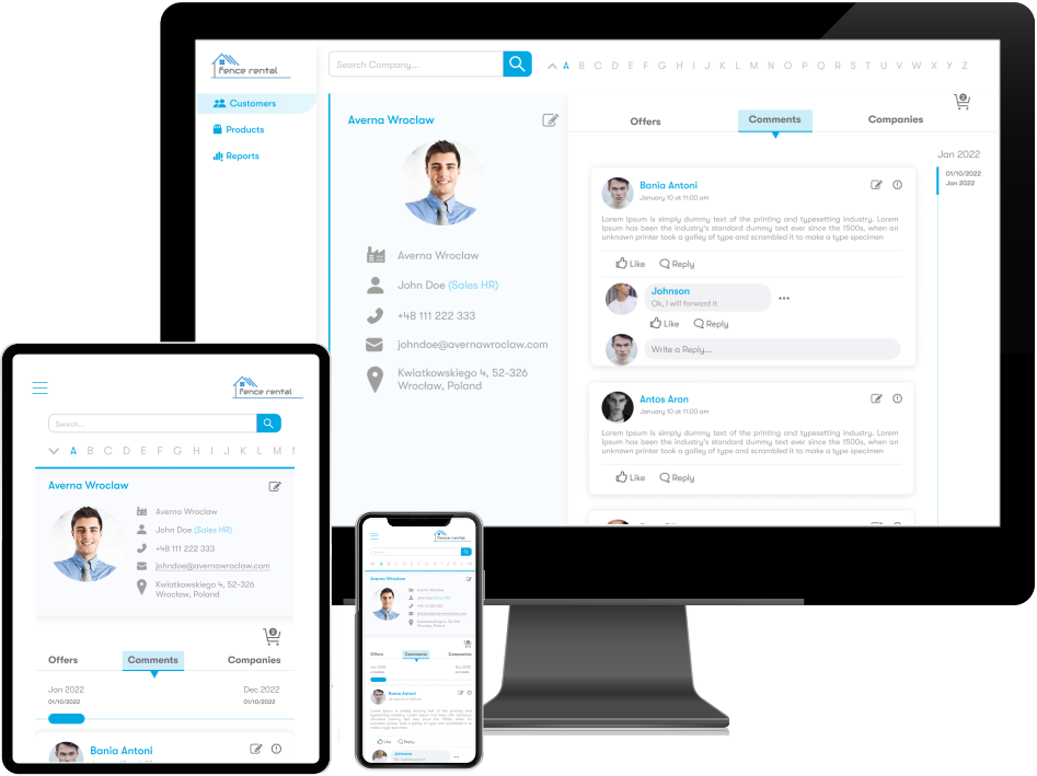 W systemie Fence Rental pracownicy mogą sprawdzić opinie na temat produktów oraz firm je produkujących. Dzięki wygodnemu kreatorowi, pracownicy Fence Rental z łatwością przygotowują oferty, dostosowując takie parametry, jak czas i koszt dostawy, czy rodzaj wynajmowanego ogrodzenia. Dodatkowo system sam wylicza zestawienie kosztu wynajmu ogrodzeń oraz wystawia faktury, które wysyła później do Klienta.